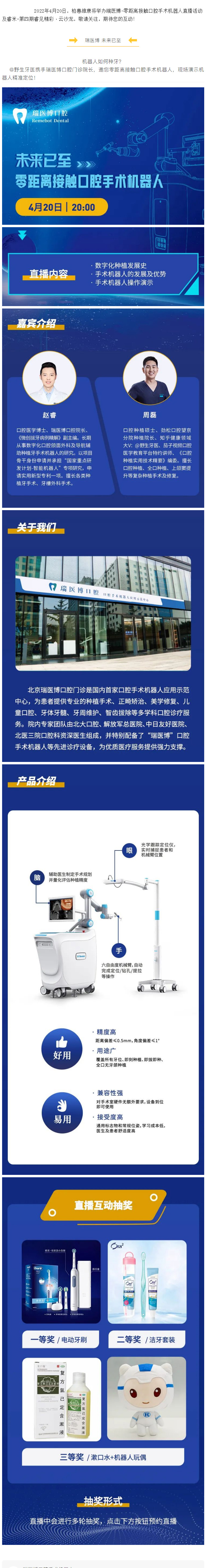 直播預(yù)告|4月20日,“柏惠雙星”瑞醫(yī)博口腔機器人零距離直播&睿見精彩TM·云沙龍第四期
